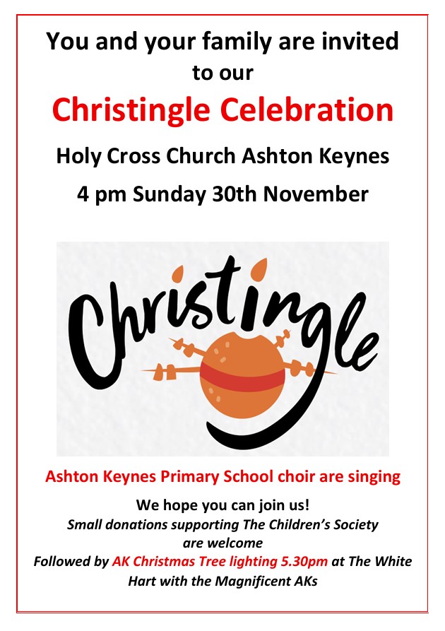 - 4pm Christingle service at Holy Cross Ashton Keynes
